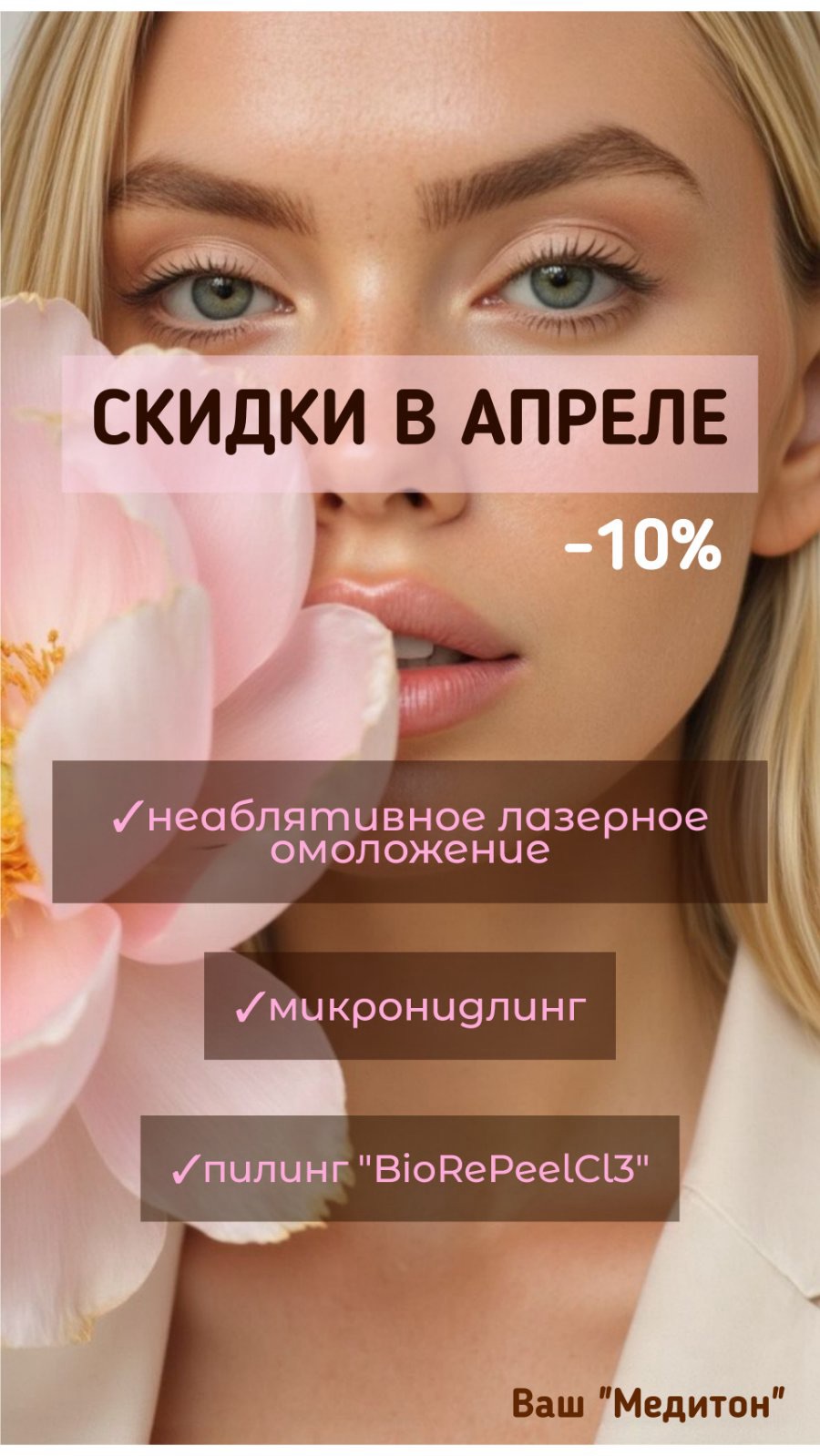 Вот уже 7 лет центр врачебной косметологии и дерматологии “Медитон” заботиться о вашей красоте и здоровье!